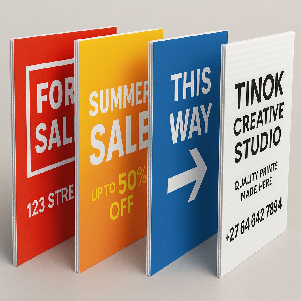 Durable, lightweight and weather‑resistant, our Correx board (corrugated plastic) signage is the perfect solution for both indoor and outdoor applications. Whether you need eye‑catching event posters, directional signage, real‑estate boards or promotional displays, Correx board delivers crisp, full‑colour prints on a sturdy substrate that stands up to the elements.